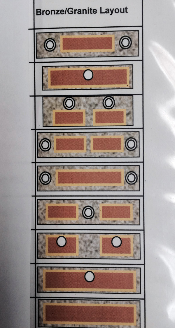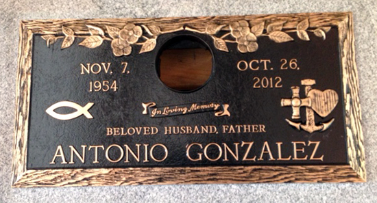 Bronze markers lay flat to the ground with a bronze plaque mounted on top of a granite base marker. Common types of bronze markers are rectangular in shape with a polish-top standard color granite as a base. Bronze markers are set on a concrete foundation.