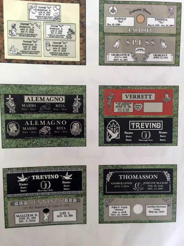 A memorial marker is a great choice when looking for something simple, yet elegant. Markers generally lay flat to the ground. The design options for your memorial marker are virtually limitless with our large variety of textures, colors, and designs. We guarantee your creation will be beautiful and unique.